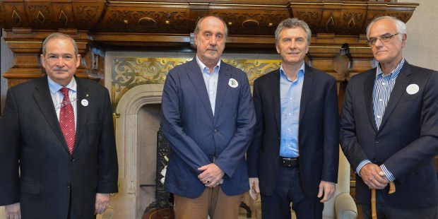 "Perdemos a un defensor de lujo, pero ganamos a un todoterreno", expresó el Presidente con humor, trazando una metáfora futbolera entre Cano y Vignolo, en un breve acto realizado al mediodía en el Salón Blanco de la Casa de Gobierno.