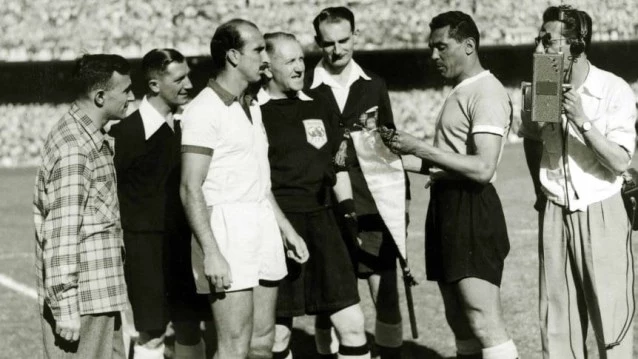 A Obdulio Varela (a la derecha de los jueces) no le pesaba enfrentar a Brasil en el Mundial de 1950. Él ya había estado cara a cara con Adolfo.