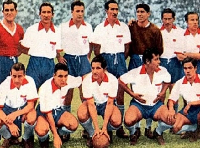 La formación del Ballet Azul que le ganó al Real Madrid en 1952. Ese día, Di Stéfano deslumbró a los merengues.