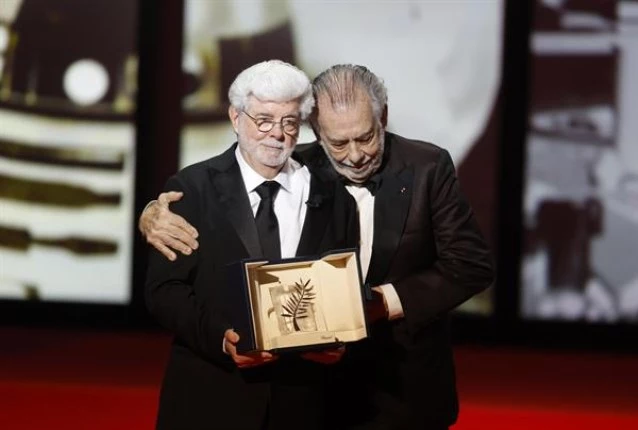 “Es un honor de recibir este premio de Francis”, dijo Lucas en el escenario, tras la aparición sorpresa de Coppola para entregarle la Palma honorífica.