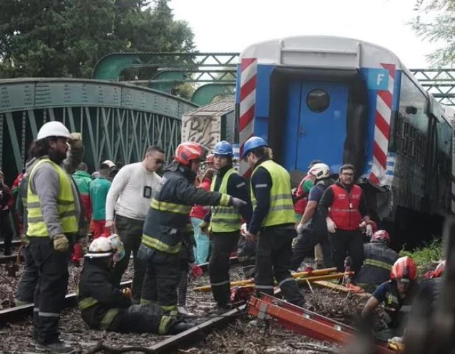 Un tren de la línea San Martín que iba con pasajeros desde Retiro hacia Pilar chocó con otra formación con material de trabajo de vías, descarriló, y 30 personas fueron trasladadas a los hospitales Fernandez, Pirovano y Rivadavia.