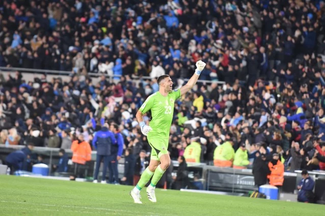 Festeja Dibu Martínez, un referente de la Selección. FOTO: GUSTAVO CARABAJAL
