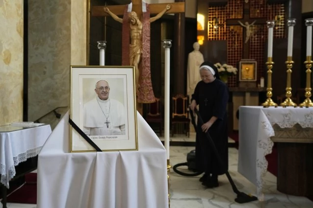 El Vaticano hizo públicas este martes las primeras imágenes del féretro del papa Francisco, en tanto que también detalló el programa de los funerales, que el sábado 26 tendrá su punto culminante. El ataúd del Sumo Pontífice está dispuesto en la Capilla de Santa Marta. Se trata de un simple ataúd de madera abierto sin el catafalco, en el que el Papa descansa vestido con la mitra, la sotana blanca, la casulla roja y el palio blanco. En sus manos sostiene el rosario.