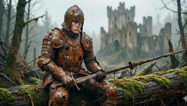 El personaje de la novela se había enamorado de su propio personaje victorioso en batallas y su armadura era como un trofeo invalorable para él.