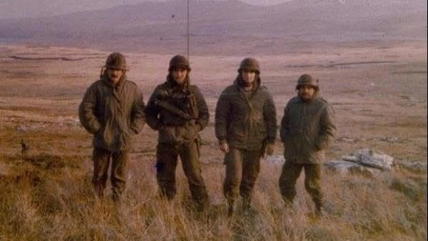 En la foto que acompaña esta nota. de izquierda a derecha: teniente Hugo Quiroga, soldado radio operador Claudio Hefner, soldado José Burns y sargento Juan Carlos Insaurralde, encargado de la 1ra Sección de la Compañía de Ingenieros Mecanizada 10.