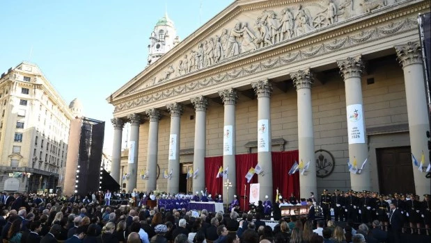 Sobre las escalinatas de la Catedral Metropolita y ante decenas de fieles, el arzobispo de Buenos Aires, Jorge García Cuerva, presidió hoy una misa exequial en homenaje al papa Francisco, quien murió el lunes pasado a sus 88 años, en la que pidió por la reconciliación de los argentinos.