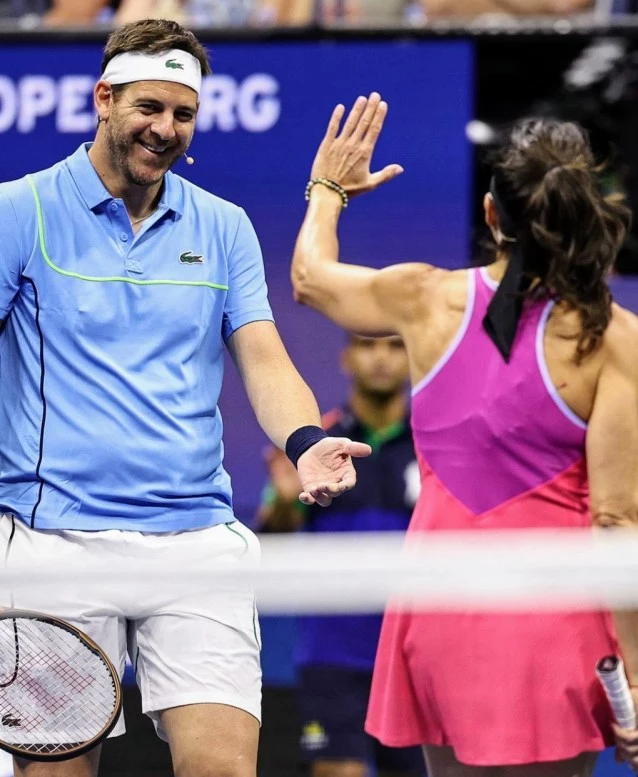 “Es un placer estar aquí con Juan, Andy y Caroline”, dijo ella al final del partido, cuando la entrevistaron. “Ha sido una noche fantástica con Gaby... y jugar un partido contra Andy y Caroline. Para mí este estadio es muy especial”, agregó Delpo. Los dos estaban en sintonía.