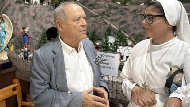 El empresario Florencio Aldrey y la representante legal de la Gruta de Lourdes, la hermana Miriam Medina, durante el encuentro.