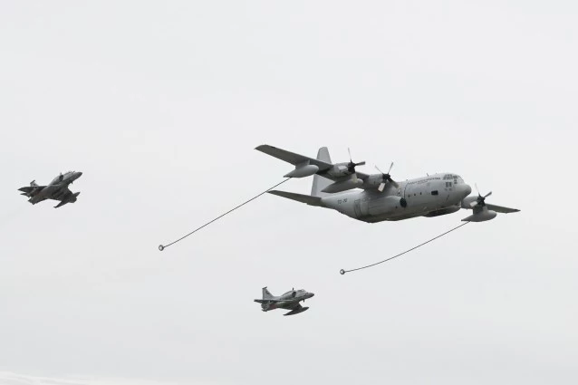El emotivo vuelo de los aviones A4 y el imponente Hércules.