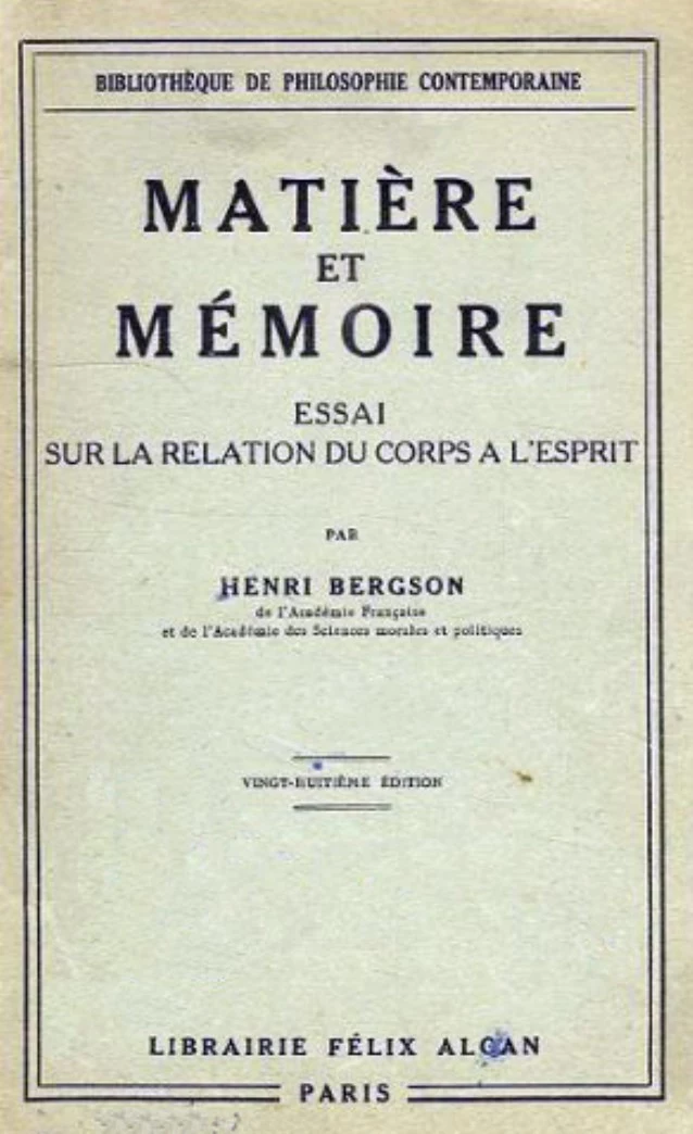 En Matière et mémoire (1896) establece dos clases de memoria: memoria-hábito —mecánica—, o que repite, y memoria-recuerdo —espiritual—, u otra que imagina. La primera se halla inserta en el presente, mirando el porvenir: “ella no ha retenido del pasado más que los movimientos inteligentemente coordinados que representan un esfuerzo acumulado”. Orden riguroso y sistemático que se figuran en movimientos actuales. No representa el pasado sino más bien lo actúa. Prolonga un momento útil en el presente. Su movimiento nos lleva hacia delante para poder obrar y vivir, montando un mecanismo, creando un hábito en el cuerpo.