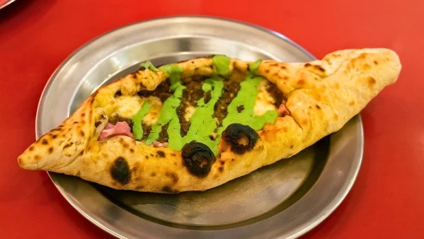 Lo hace con un sándwich en pan de pizza de masa madre, jamón natural, boloñesa, queso mozzarella, sardo y pesto de espinaca y ajo, en honor a los fideos artesanales ajillo, estrella del local elegido.
