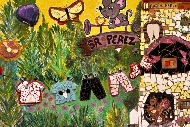 Con la misma ternura, creó la "Ciudad del Ratón Pérez" para rescatar la tradición frente a la popularidad del "Hada de los Dientes". "Muchos me dicen “Gracias a vos, ahora mi hijo le pide al Ratón Pérez", comentó riéndose. El mural incluye versiones del ratón dibujadas por los niños del barrio, con casitas cuyas puertas son dientes de cerámica.