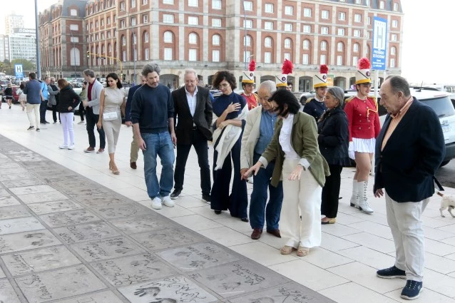 El anfitrión, Florencio Aldrey, el presidente del Incaa, Carlos Pirovano, el intendente Guillermo Montenegro y su esposa Eugenia Pruzzo encabezaron la ceremonia realizada en la tradicional vereda de la costa marplatense.