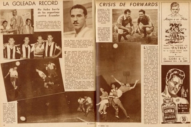 El baúl de los recuerdos. La Selección argentina se despachó con un fantástico 12-0 sobre Ecuador en el Sudamericano de 1942. Hubo cinco tantos de José Manuel Moreno y cuatro de Herminio Masantonio.
