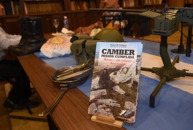 En su visita a La Prensa. Víctor Villagra tuvo la gentileza de traer todo el material (ver fotos) como el que usó durante la Guerra de Malvinas en 1982. El material (borceguís, cargadores, munición, caramañola, poncho de agua, antiparras, marmita de campaña, casco, una réplica del FAL con culata reversible tamaño real y otra, a escala, de la ametralladora pesada antiaérea 12.7) es el mismo que utiliza para dar sus charlas a lo ancho y largo de todo el país, sobre todo en colegios. Asimismo, Villagra se encuentra presentando el libro que escribió sobre su experiencia en la Guerra de las Malvinas: “Camber: Misión Cumplida” (Grupo Argentinidad. 164 páginas)