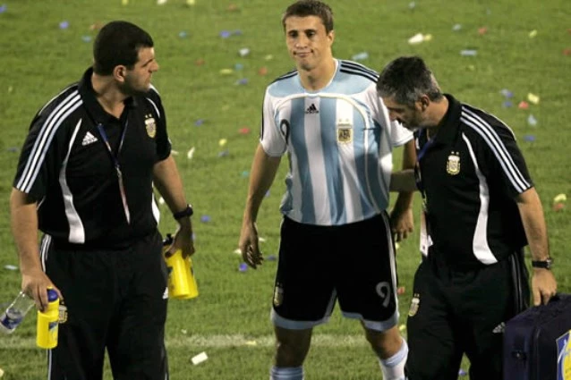 Increíble, pero real: Hernán Crespo se lesionó al patear un penal. Una baja de peso en la ofensiva albiceleste.