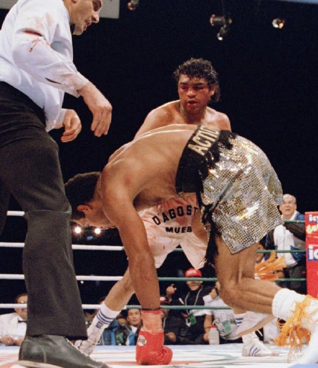 Por vaya a saber qué extraño designio del destino, el juez sudafricano ya sabía lo que era tener su blanca indumentaria teñida por la roja sangre de un argentino. El 22 de mayo de 1976 había sido el tercer hombre en una pelea mítica del boxeo nacional: la victoria de Víctor Emilio Galíndez sobre Richie Kates en Johannesburgo. Y como si fuera un calco de ese combate, Christoudolou pensó en detener el martirio que estaba sufriendo Castro. Casi dos décadas antes, le dio el vía libre a Galíndez para consumar una hazaña y lo volvió a hacer en 1994, con la autorización del médico Luis Spada.