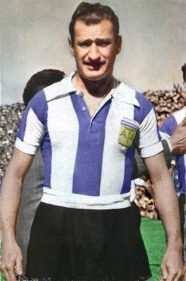 Con la camiseta de Racing en una época en la que el campeón del año anterior llevaba el escudo de la AFA en el pecho.