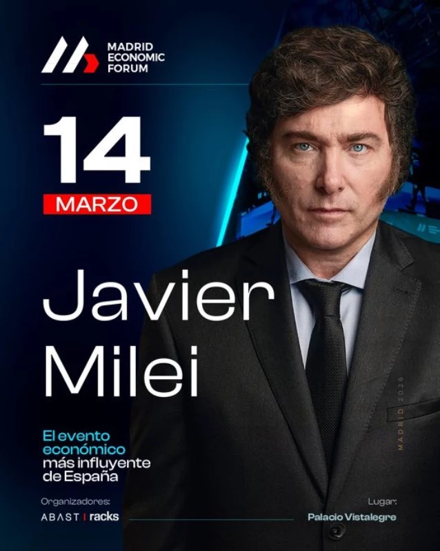 En el cronograma del evento figura que el mandatario estará a cargo del cierre del mismo, luego de una serie de paneles entre los que incluye un debate que gira en torno a “La Argentina de Milei” a cargo del doctor en Economía, Juan Ramón Rallo, y el economista, Eduardo Garzón.