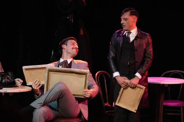 En otra mesa, Alma Mahler -compositora y viuda de Gustav Mahler- y Oskar Kokoschka -pintor expresionista austríaco y uno de los retratistas más feroces de su tiempo- reactivan un vínculo marcado por el deseo, la dependencia y la rivalidad. La escena se apoya menos en el texto que en las interrupciones, los gestos que suspenden la palabra. Mahler representa un tipo de sensibilidad que no separa erotismo y pulsión artística; Kokoschka, una emocionalidad desbordada que se proyecta tanto en su pintura como en su vínculo con ella. El cruce entre ambos sugiere una violencia latente en la intimidad estética: lo que se juega ahí no es una historia de amor sino una batalla de estilos.