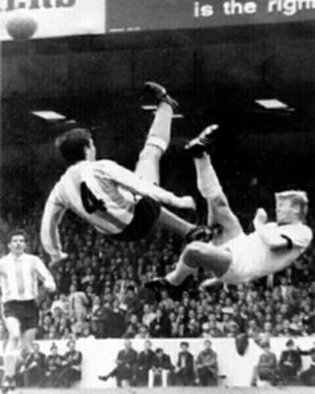 Un acrobático despeje contra el alemán Helmut Haller en el Mundial 66.