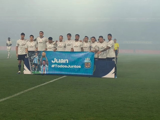 Los jugadores de la Selección no se olvidan de los compañeros que la están pasando mal. Salieron a la cancha con una camiseta con el nombre de Joaquín Panichelli, quien se rompió los ligamentos cruzados de la rodilla y estará alejado de las canchas entre seis y ocho meses y con una bandera con la leyenda “Juan # Todos Juntos” para apoyar a Juan Foyth, integrante del equipo campeón en Qatar 2022 que en enero sufrió una rotura del tendón de Aquiles izquierdo. Ambos futbolistas estaban en los planes del técnico Lionel Scaloni, pero quedaron al margen del Mundial de Estados Unidos, Canadá y México.