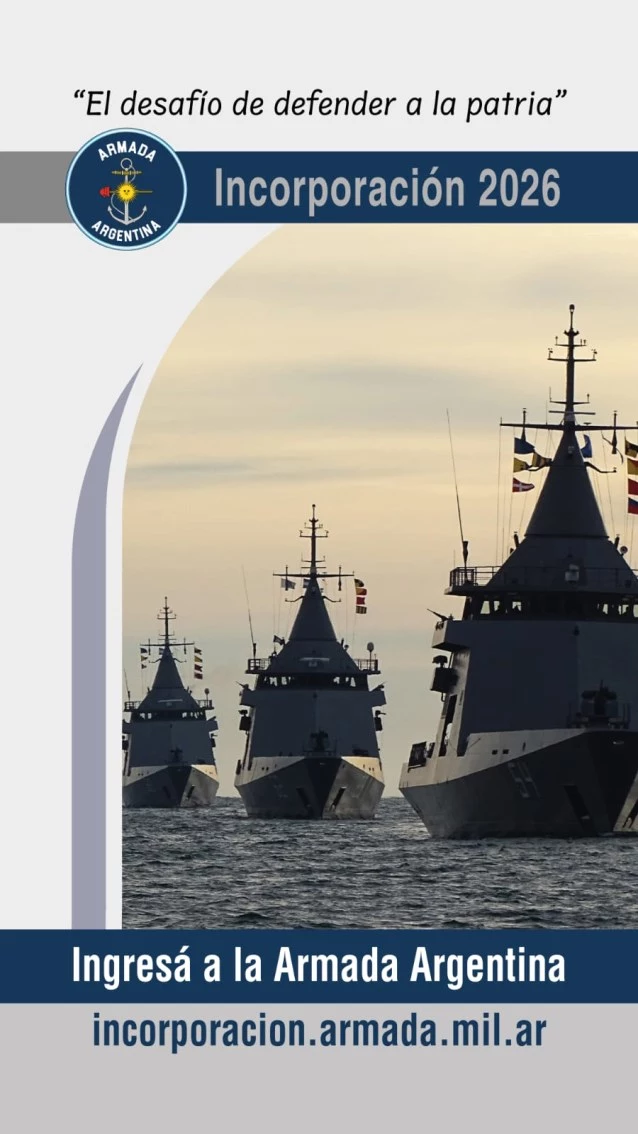 La institución inició el proceso de incorporación 2026 para la formación de futuros Oficiales y Suboficiales de la Armada. La convocatoria incluye a jóvenes de entre 18 y 24 años, de ambos sexos para el ingreso a la Escuela Naval Militar o la Escuela de Suboficiales de la Armada. En todos los casos los interesados deberán ser argentinos, nativos o por opción; haber completado el nivel de estudios secundarios o estar cursando el último año sin adeudar materias de años anteriores; y no poseer antecedentes penales, ni haber sido dados de baja en otras Fuerzas, por desacato o mala conducta.