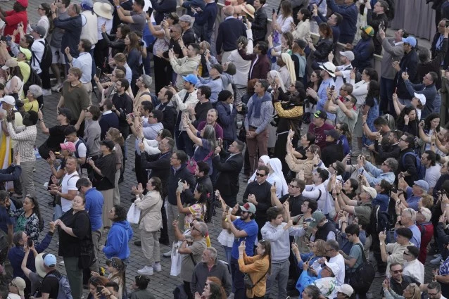 En esta mañana de jueves la plaza registraba unas 10.000 personas, entre fieles y curiosos, cifra notablemente inferior a las más de 30.000 que anoche esperaron también en vano a que saliera el humo blanco de la chimenea de la Capilla Sixtina.