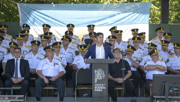 El episodio ocurrió en la Escuela de Policía Juan Vucetich, donde egresaron 1.547 efectivos que se incorporarán a la fuerza. El clima comenzó a enrarecerse cuando el mandatario señaló que al asumir su gestión había recibido una policía “mal equipada” y “desprestigiada”. Lejos de ordenar el acto, la afirmación desató una reacción inmediata entre los presentes.
