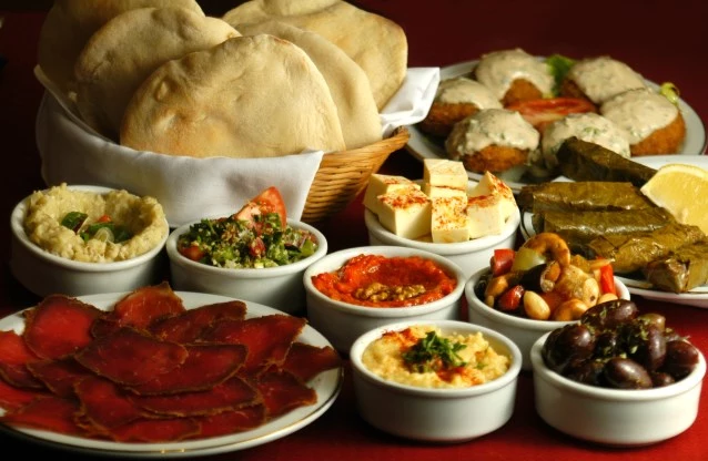 Entre los platos fuertes ofrecidos se destacan el Kebab, Kefte (carne picada condimentada con cebollas, perejil y especias orientales); o el Shish (brochette de carne en trozos macerados con especias orientales, tomates, morrones y cebolla).