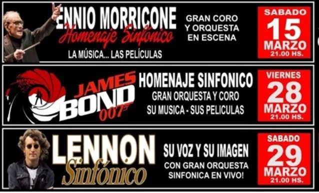 El Teatro Opera de esta Ciudad se prepara para recibir tres espectáculos sinfónicos que rendirán homenaje a grandes iconos de la música y el cine: James Bond, Ennio Morricone y John Lennon. Con una impresionante producción, pantallas gigantes y orquestas en vivo, cada evento promete transportar al público a través de la magia de la música y la imagen.