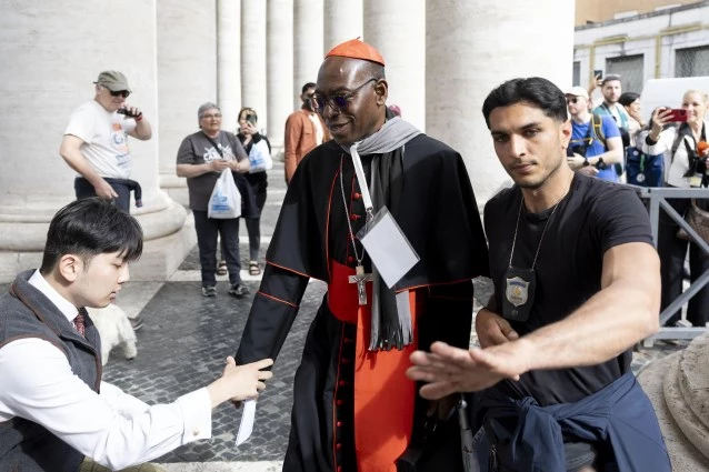 El cardenal Ignace Bessi Dogbo arriba a la Plaza de San Pedro para una congregación general.
