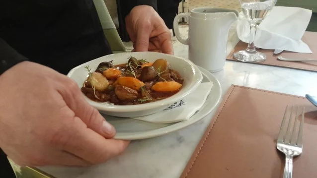 En tanto, “Calvario de Magda”, fue el plato fuerte. Una fusión entre el Goulash y el Boeuf Bourguignon maridado con un blend Malbec - Cabernet Petit Caro. En palabras del chef: “La obra no especifica en qué lugar de Europa se desarrolla, por eso decidimos fusionar dos íconos de la gastronomía del viejo continente, platos de resistencia que le hicieron muy bien a esa región durante muchos años”.