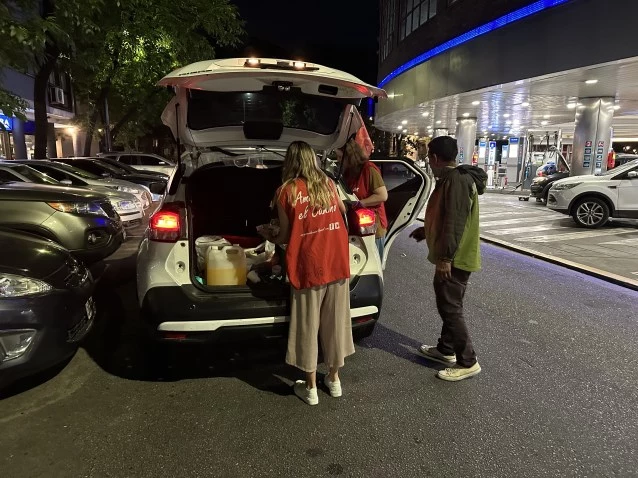En cada jornada se preparan autos con bebidas y alimentos para distribuir durante los recorridos nocturnos que la ONG realiza en las calles de Buenos Aires.
