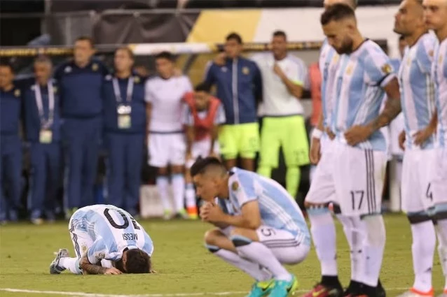 Messi sufre su amargura. Sus compañeros lo acompañan en el sentimiento. Argentina tuvo dos frustraciones inmensas en menos de un año.