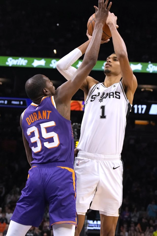 Los Suns borraron un déficit de 27 unidades. Empataron el partido a 116 con 4:21 minutos restantes, gracias a un triple de Keita Bates-Diop. Sin embargo, los Suns respondieron, al anotar los 12 puntos siguientes, incluidos 10 de Wembanyama, el astro precoz.