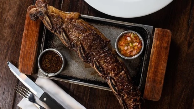 El anfitrión resalta que las achuras y cortes de carne se cocinan a la leña del quebracho y que se trata de novillos pesados son criados en 90 % de pastura.