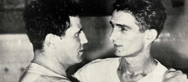 Bernabé Ferreyra, el primer ídolo popular del fútbol argentino, saluda al joven Capote De la Mata.