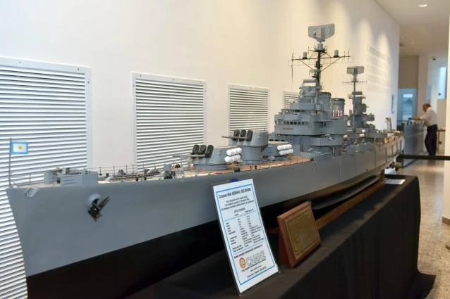 Recibe al visitante una réplica del ARA Gral. Belgrano. FOTO: GUSTAVO CARABAJAL.