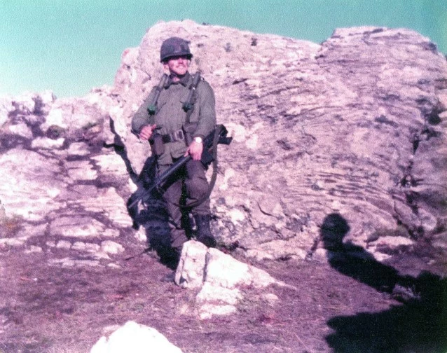 Junio de 1982. El subteniente Esteban Vilgré Lamadrid, 21 años, en el Monte Dos Hermanas poco antes de partir en una patrulla.