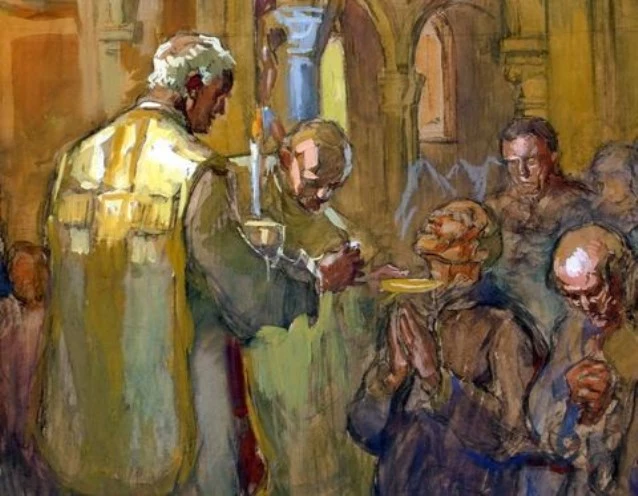 Hay un cuadro, La comunión de los pescadores, donde se ve a varios de estos hombres arrodillados en el reclinatorio de una iglesia, mientras se acerca un sacerdote para darles la comunión.