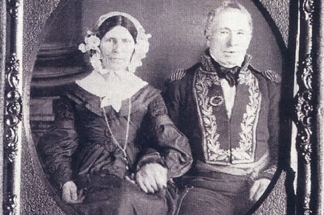 El almirante Guillermo Brown y su esposa Elizabeth Chitty durante su aniversario de bodas en 1844.